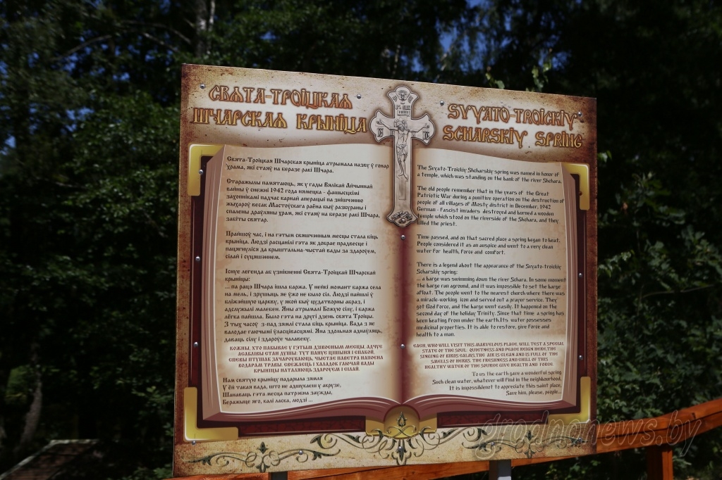 Рядом, на левом берегу Щары, удивительным образом уживаются две несовместимые, на первый взгляд, достопримечательности – старая дегтярня и чудотворный родник.
